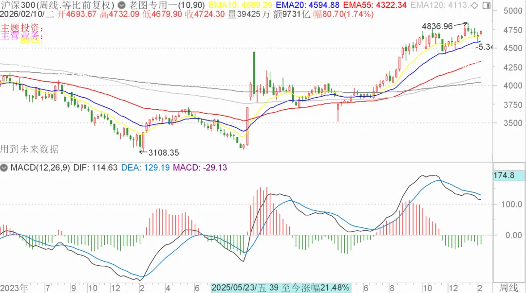 今天我们正式更换了指数标的,沪深300的中长期趋势相较上证会更真实反映两市的趋势,从周线趋势(中期趋势)图来看,股指在创出近年来的新高后就呈现温和的调整趋势,良好的均线系统呈现多头趋势稳健托着股指上行,中期上涨的预期不变