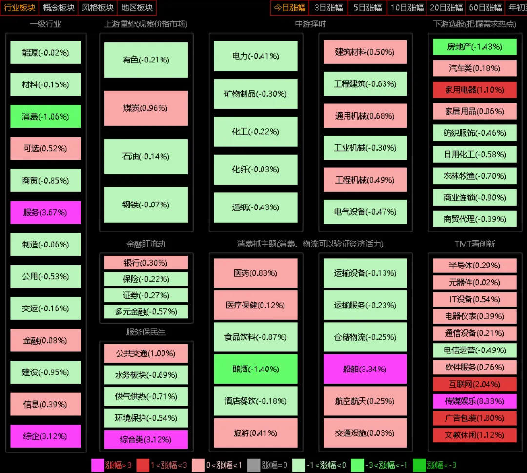 新年的假期,看电影、玩游戏,所以影视、游戏、传媒爆了,短期的热点,关注这几个题材的ETF比较好把握其他的行业,看看下面的行业全景图,一目了然,没有啥好说的,分化、各自为战,似乎有些主力机构已经提前休息休假了