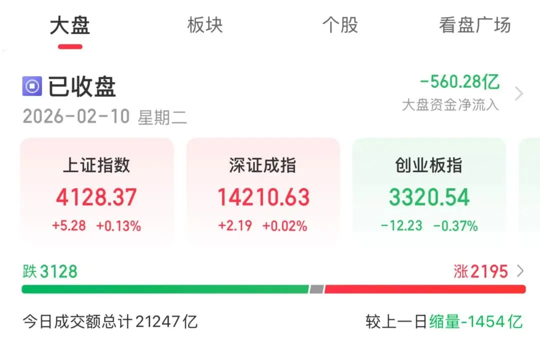 今天市场情绪从昨日的亢奋中回归冷静,字节即梦概念板块大涨,如传媒、影视等被资金爆炒,而太空光伏、白酒、贵金属等则出现了明显回落,与此同时大盘成交额也继续萎缩,反映出节前资金较为谨慎,进场意愿并不强。截至收盘,上证指数涨0.13%,深成指涨0.02%,创业板指跌0.37%,北证50指数跌0.61%,沪深京三市成交额21247亿元,较上日缩量1454亿元,三市超3100只个股下跌。大盘趋势分析