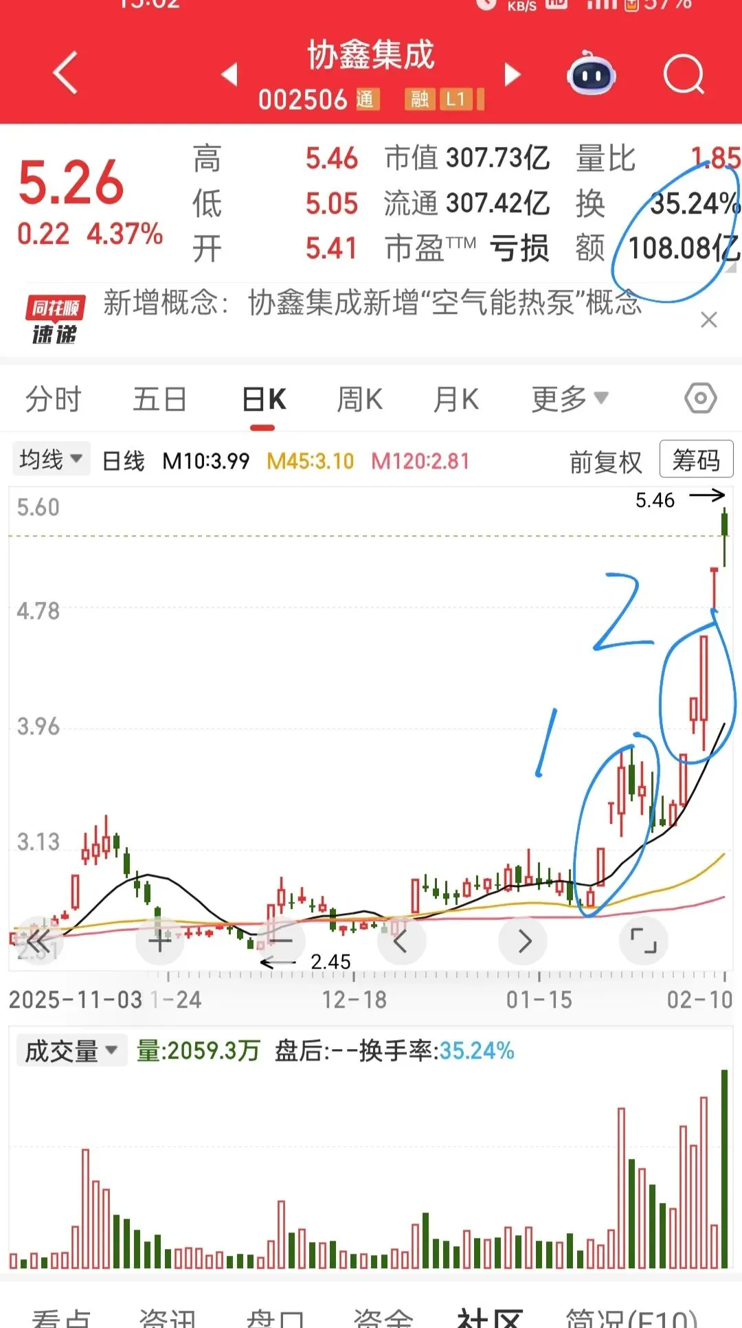 顺便说下什么是博弈论?就是利用人性、统计概率、寻找最优解! 股市如战场,既要复盘推演、也要临场应变,就是动态博弈。因为“什么时候拉、什么时候砸”主力说了算,涨跌方向盘不在我们手上,所以要随机应变。 再说说怎样在交易中运用博弈论?最经典的博弈论就是囚徒困境,不懂的可以网上搜,这里不做详细介绍,只是简单总结,囚徒困境就是利用人性、统计概率、寻找最优解。为了更好地解析,还是先看下面这个票的日K分时走势图,复盘推演一下这个票里面的主力和散户的博弈心理。 从枝术面看,这个票近半年底部横盘缩量止跌, 近期先是3连板迅速突破半年高点压力位,随后调整几天,又走出4连板走势,从第一波3连板到第二波3连板之间的高度看,主力即使出货,获利空间也不会超过 15%,为什么这么说?由于第一波2连板都是缩量板,说明主力没有出货,次日平开是在拉高护盘,如果主力要出货,想想3板当天百亿成交,散户根本接不住的,瞬间就秒砸跌停了,还怎么出货。接着调整几天连续放量近300 亿,由于是横盘趋势,不知道是洗盘还是中出货,但随后又是放量2连板,暂且认定二波第2板放量是主力板上出货,但二波第3板低开秒砸后,被更多的资金水下弱转强拉板了,如果说二波3连板看不出来是洗盘还是出货,那么昨天竞价缩量秒板,几乎可以确定前一天是洗盘了。 再从消息面看,昨晚周末公司突发公告大股东减持5%股份,关注这个票的大部分人都看到减持消息了,请问如果你是里面的主力该怎么操作?方案1:竞价挂跌停大单按死、这是自废武功,方案2:继续大单一字涨停、这是给大股东和散户接盘,方案3:大幅低开,如果主力开盘跑就秒砸跌停了,如果主力不跑就让大股东和散户先跑了,方案4:大幅高开,先稳住里面大股东和散户的情绪、都别慌、别急着卖、主力我还要继续拉高,谁卖谁后悔!大股东和散户心想,你光表演可不行,得拿钱护盘啊,事实也是如此,开盘后并没有秒砸跌停,主力也在横盘维护股价,大股东和散户也在犹豫卖不卖,因为从今天的分时成交量看,横盘时并没有多少成交量,散户和大股东是不大可能再买的,很大概率是主力在买,如果主力卖,又没有多散户买,瞬间就砸到水下了。 我们再推演下,这个票未来走势会怎样?很多人可能会说,既然交易是概率游戏,那推演个屁啊,直接跟随主力买卖就好了。概率游戏,不是无序随机涨跌,而是主力精心操控的,运用的就是人性博弈论,利用人性的贪婪恐惧、统计买卖盈亏概率、寻找最优解。当然统计盈亏概率,需要计算自己的成本和拉板、砸盘的阻力,获得的盈亏收益比,没人想做亏钱买卖。由于我们只能看到自己的成本,看不到主力的成本,所以无法统计主力的盈亏概率,只能跟随应变。如果我们能看到主力的成本和资金持仓量,那么只要获得足够的资金与股票,并反向操作,瞬间就可以击败主力。 继续推演,如果你是主力末来几天该怎么操作?想快跑,没多少散户接盘,肯定跑不了,想慢跑,容易被大股东和散户发现,让他们提前跑了,货全砸自己手里了。既然跑不了,能不能挽回损失?当然能,就是向下砸盘做空挣钱,别忘了这个票是沪股通可以融资融券的,既然不能做多挣钱,那就做空挣钱。 这就是为什么很多票冲高回落和断板必卖的原因!你以为冲高回落和断板只是涨不动这么简单吗?既然推演预判出主力接下来可能会采取那种操作,那么我们就要立即行动。该怎么做,不用我多说了吧。 以上推演内容,就是人性博弈论在交易中的运用!(重点是你提醒,以上所有内容仅为经验分享和个人观点,不作为买卖建议,投资者应该独立思考判断,为自己的选择负责,据此操作后果风险自担。) “强势预判,弱势跟随”,具体操作就是“上升趋势中,预判止跌企稳后低吸追涨弱转强,横盘趋势中,跟随放量突破后追涨打板,下跌趋势中,无论放量缩量立即卖出、止损观望”。