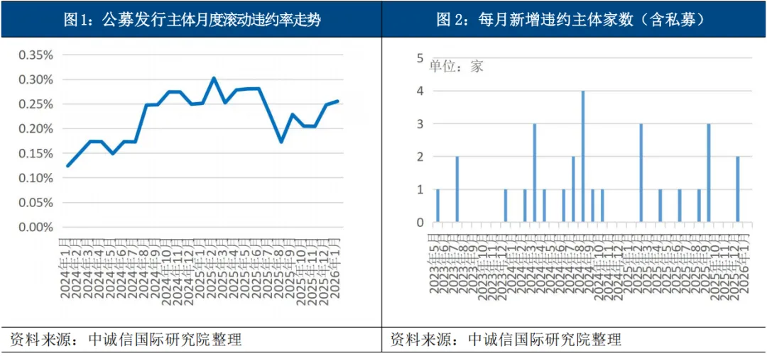1、违约情况:公募债券市场月度滚动违约率[1]为0.26%