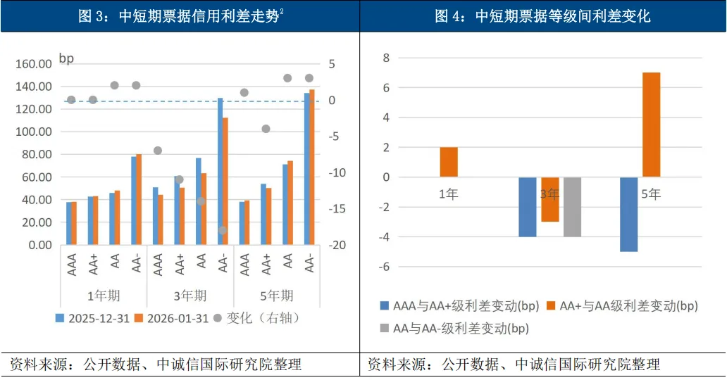 3、信用利差:中短期票据信用利差表现分化