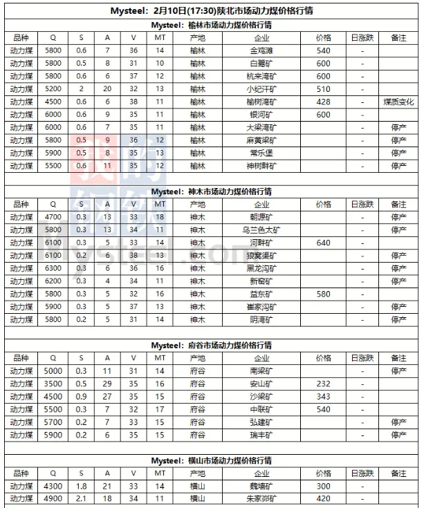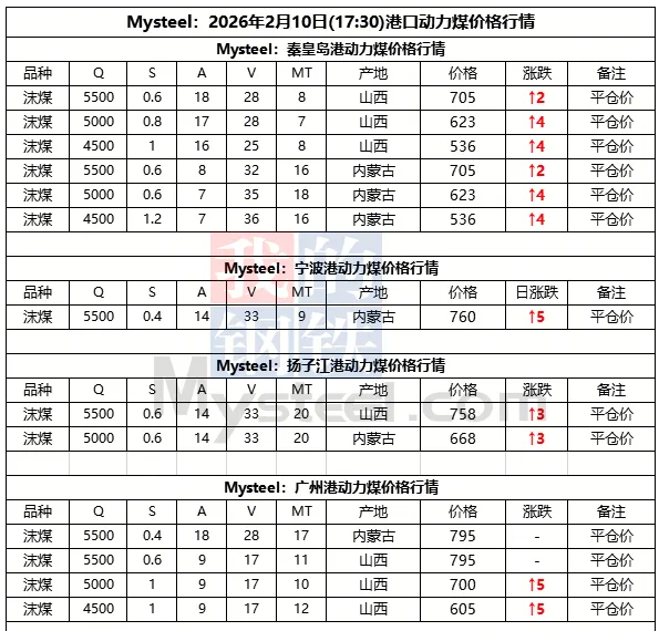 10日港口市场动力煤价格持稳运行。佳节将临,市场交投氛围逐步冷清,部分现货报价坚挺,下游仍以压价为主,交投僵持,成交不畅。年底电厂补库需求基本完成,加之非电企业放假陆续增多,供需双弱下市场参与者基本暂缓操作,煤价涨跌困难,观望运行为主。预计短期内港口煤价多以持稳运行,后市需持续关注港口去库速度及市场实际成交情况。