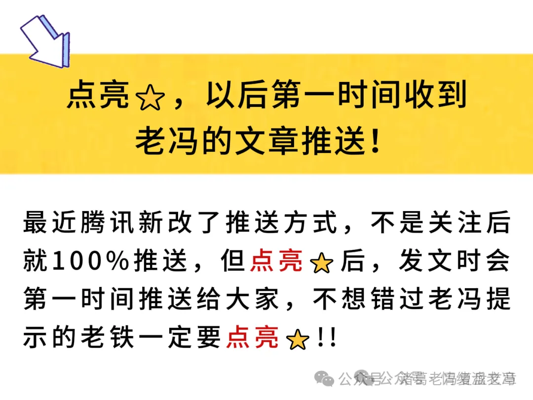 老冯每天都要用数小时精心复盘,还要给团队开会,所以有时候会比较晚,还请家人们见谅!大家阅读后,点赞、在看、留言,请务必养成阅读公众号文字版复盘打卡的习惯!如果长期点赞留言,会被系统判定为铁粉,第一时间推送文章,不然可能会收不到推送或延迟推送。