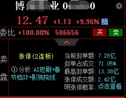 今天一开盘,影视院线板块就直接发力,翻看同花顺实时资讯就能看到,截至上午收盘,板块全线飘红,博N影业直接封死涨停,股价冲到12.47元,单日涨幅9.96%,2连板!更厉害的是,博N已经连续两日涨停,势头如虹;光X传媒紧随其后,11:04后涨幅20%。接触过凡哥的人,就能判断出凡哥能否凭十几年盘感和行业洞察力分析出这种行情机会!