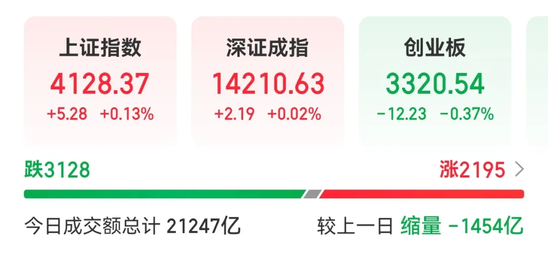 继昨日市场普涨之后,今日A股进入正常分化,整体交易偏于清淡,呈现典型的节前缩量格局。尽管全市场超3100只个股收跌,但涨跌中位数为-0.26%,整体亏钱效应不大,红包行情趋势并未改变。两市成交额2.11万亿,较上一交易日缩量1439 亿。近期连续缩量,主要与节前氛围有关,不少资金已提前进入“过节模式”,大家或许都在忙着筹备各种年货或走亲访友,交易热情稍显降温。