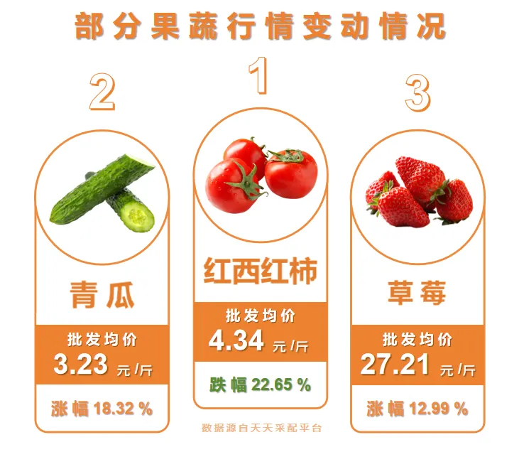 依据涨跌幅排序显示,青瓜、大白菜、红肉火龙果、草莓、鳗鱼等品种的批发均价涨幅较大,而红西红柿、香芹、东北油豆角、湖南青椒、香菜等品种的批发均价出现明显的下跌。