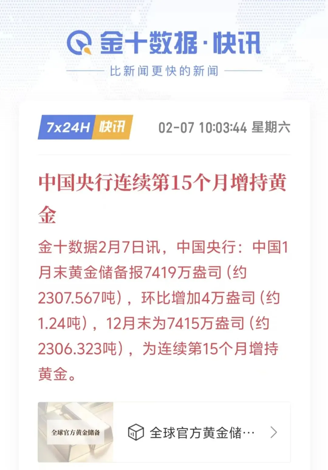 1. “国家队”持续买入:咱们中国央行1月份又增持了黄金,这已经是连续第15个月“买买买”了。这就像定心丸,给了市场不少信心。