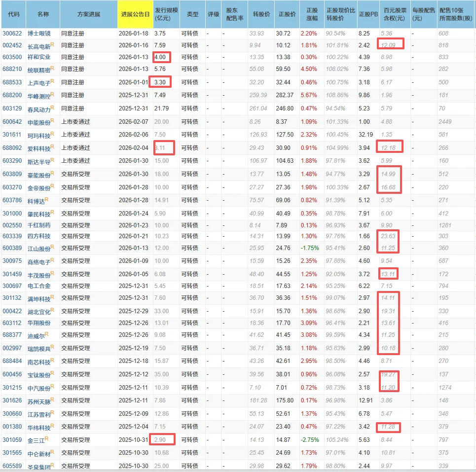 比如下面集思录,发行规模小于5亿,百元含权10元以上的。(随便圈圈,埋伏配债还要结合很多东西看,圈了并不是推荐)