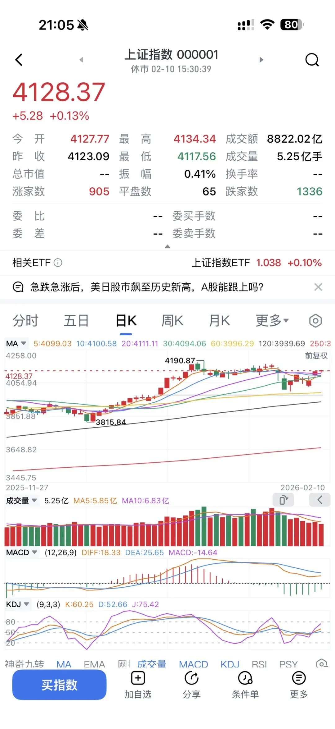 今日成交2.12万亿,缩量1455亿,成交量再次萎缩。昨日科创创业大涨,今日以震荡为主,光伏板块表现萎靡,科创板50+创业板50指数较强,坚持高抛低吸策略。横店影视周一早盘直接涨停,今天继续早盘大单封涨停,有AI应用加持的影视板块继续维持强势。外部地缘政治不太平,特别是春节假期格外长还是要保持谨慎。今日成交量低于2.8万亿,部分活跃资金“封刀入库”符合春节前特征,大A收微涨在4128,涨跌停71:10。相信短期调整后,适度宽松的货币和财政政策不变会持续激发做多情绪,春季攻势可期,但要回避业绩暴雷ST的股票。坚定看好以AI人工智能+算力芯片+机器人科技牛主线带领下指数往上突破。