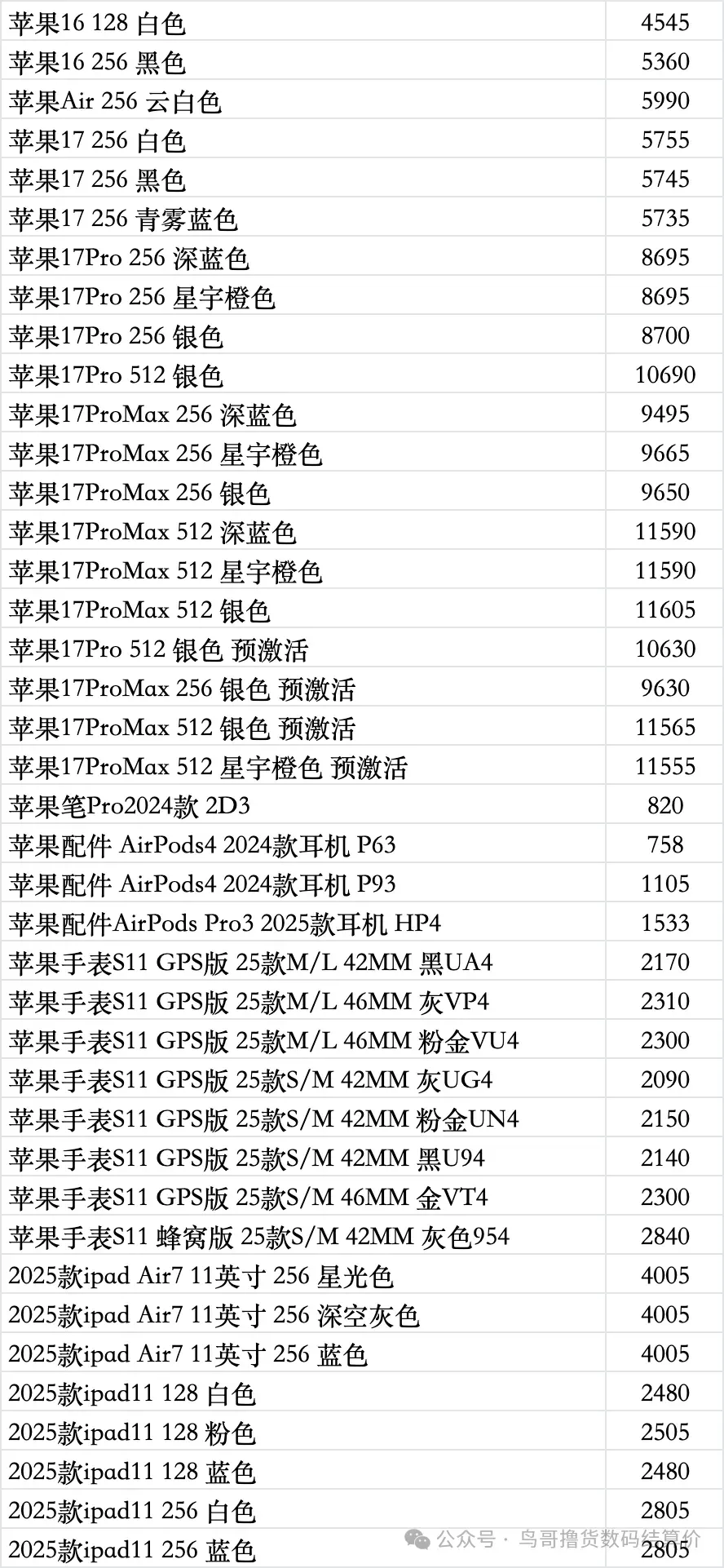 | 鸟哥收货iphone/ipad/手表系列结算价(前一天的结算价) |
