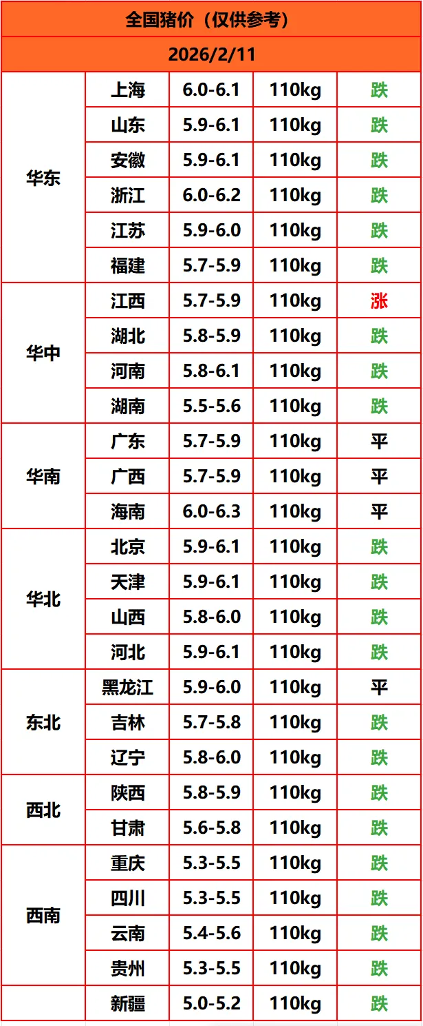 >2026.02.11生猪价格行情