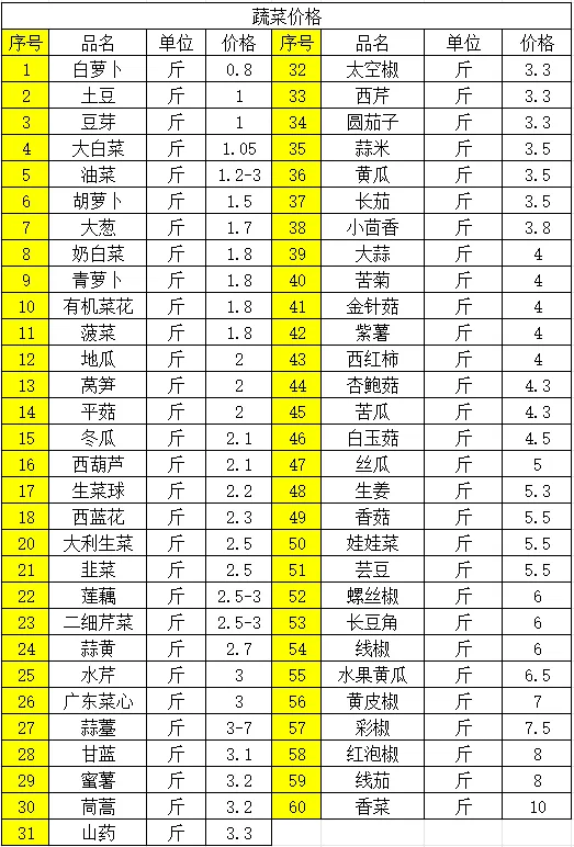 1、蔬菜价格