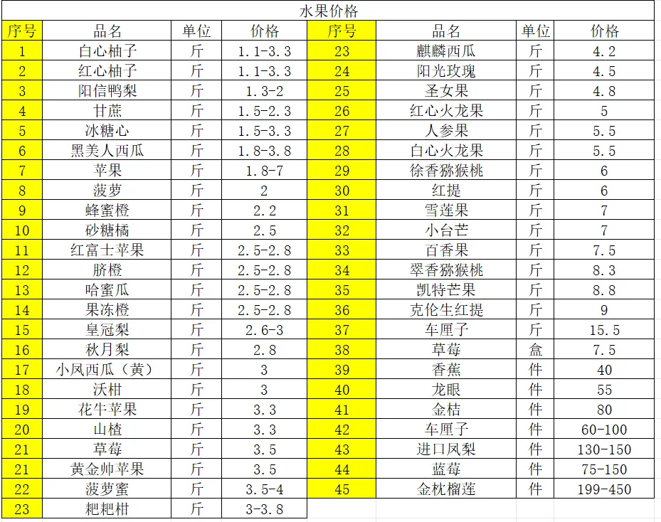 2、水果价格