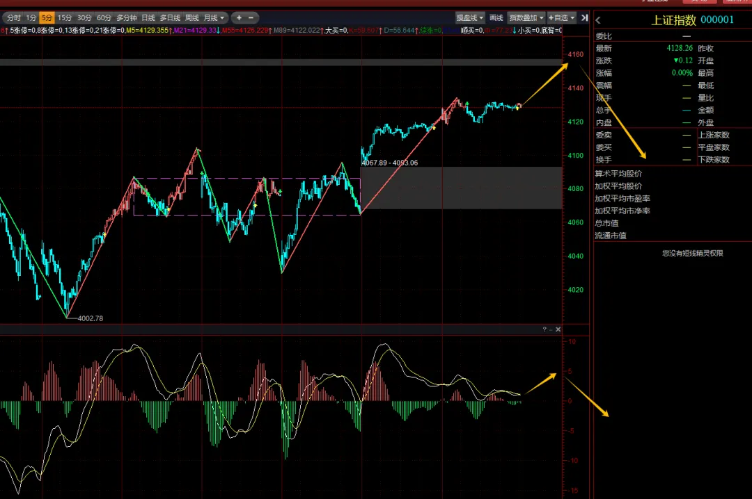 5分钟图,动能有衰竭,往上动能不足,冲高多为假突破。