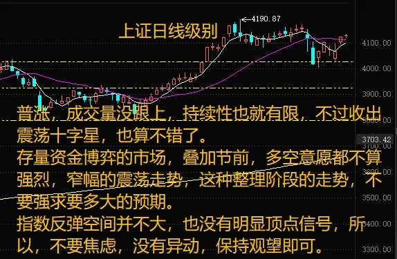 普涨没放量,紧接着是震荡十字星,市场情绪相对稳定,也符合预期。小长假前期,资金面上略有收敛,如果维持小幅波动,少看少动,回顾历年春节前后,行情并不差。