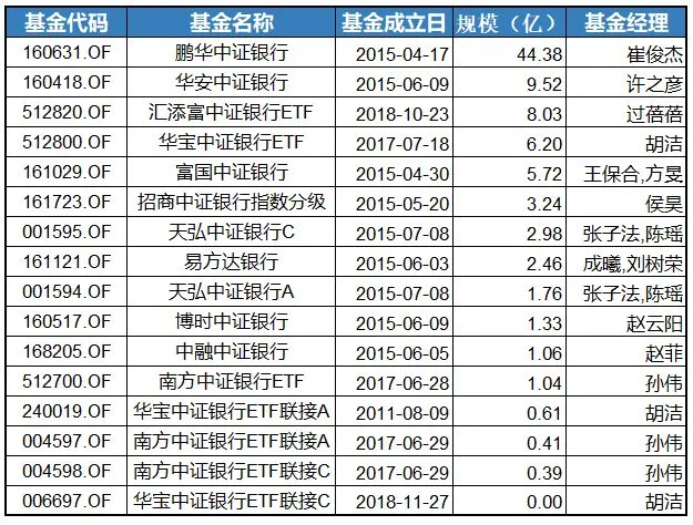 截止2019年2月25日,跟踪中证银行指数的相关基金统计。