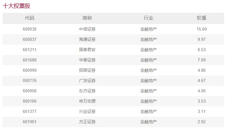 证券行业合计42家上市公司,所属行业指数基金追踪的基本都是中证全指行业指数,代码:399975,选取中证全指样本股中至多50只证券公司行业股票组成,以反映该行业股票的整体表现。