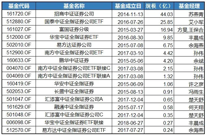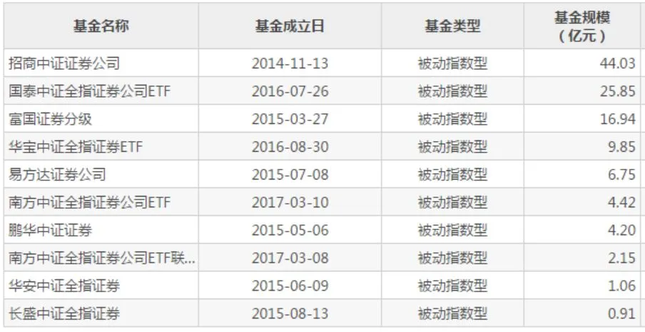 截止2019年2月25日,跟踪中证证券指数的相关基金统计。