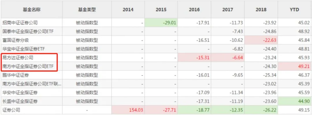 场外指数基金方面,易方达证券公司长期表现较优,首选。