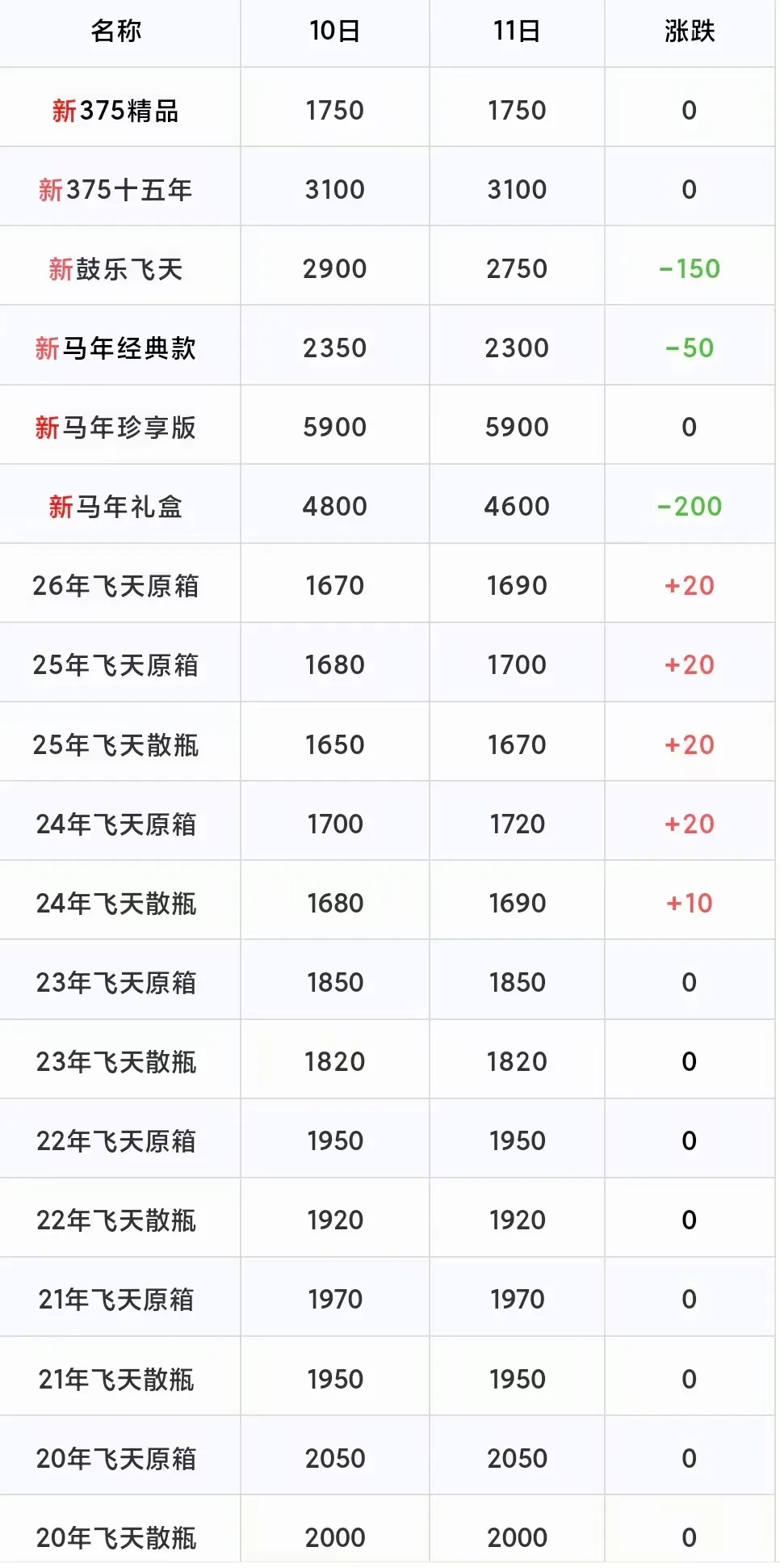 飞天大涨!2月11号酒价行情 新旧飞天价格突破1720元!
