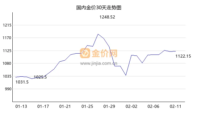 今日国内金价上涨,现价1124.28 元/克,上涨0.34%,今日开盘价1123.50,最高价1128.10,最低价1115.00。
