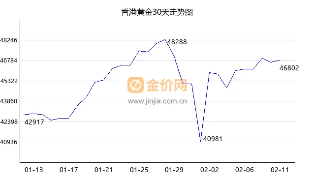 今日香港黄金上涨,现价46926 港币/两,今日开盘价46651,最高价46939,最低价46631。
