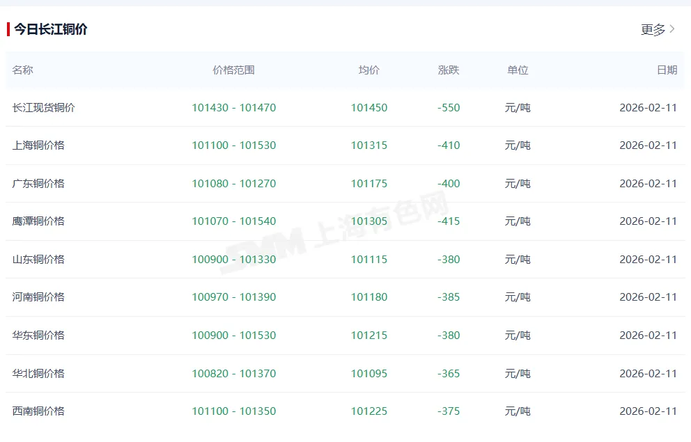>今日铜价多少钱一斤最新行情,长江铜价今日铜价走势图(2026年2月11日)