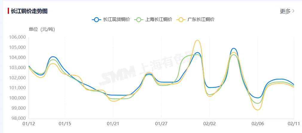 今日铜价多少钱一斤最新行情,长江铜价今日铜价走势图(2026年2月11日)