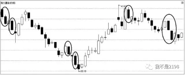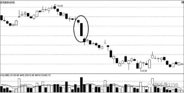 这种阴线一般发生在下降趋势运行途中,既是对下降趋势的推动,也是对下降趋势的验证。如下图所示。
