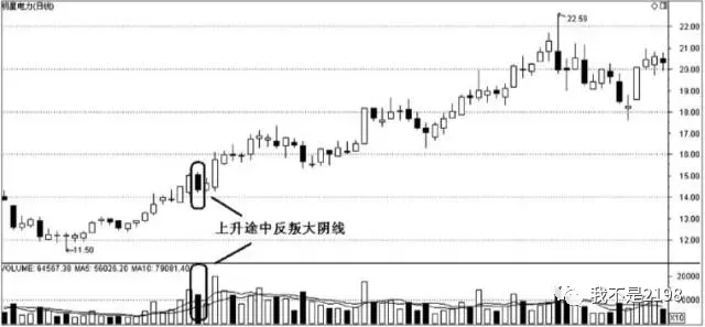 这种阴线是指行情正式暴涨之前空头的最后反扑,或上升趋势运行途中突然出现的大阴线。通常这样的大阴线会被一口口吃掉;