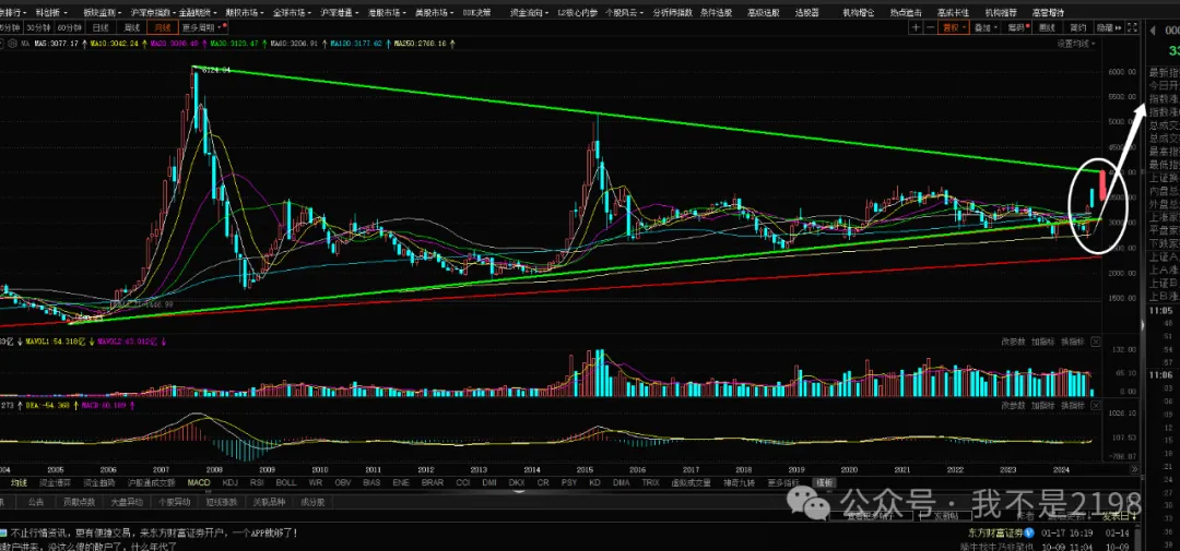 对于大盘来说,我现在已经对日线走势不太感兴趣了,我现在思考的是主力未来将会如何面对上边这条巨大的压力线,毕竟这个是6124和5178的连线,越过它才是真正的大牛市加速段,但是这个位置压力是所有人都看得见的,绝对不是一般性的连续上涨就能攻击过去的。所以,我猜想,这个月会不会让大盘收一根阴线,算是一次正常的5日线回撤确认,然后在11月给出一根大阳线,这样月线就能形成一个两阳夹一阴的多方炮攻击形态,那样的话,我们是可以在年底去攻击上方4000点左右的压力位的,并且有多方跑的形态,几乎是一次性拿下的结果,为了这样的目标,当前的洗盘恐怕就是最好的选择了,如果不洗盘,让大盘继续在月线收阳,那么由于月线的MACD是水下金叉的,所以,未来再次上攻4000点的话则可能会形成假突破,最终甚至让牛市走坏掉,基于以上的分析,这个位置能在月线好好做文章,其实不是坏事,真的是洗洗更健康了。