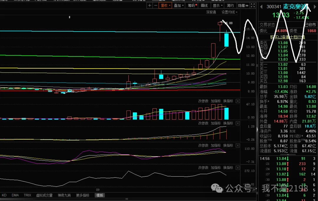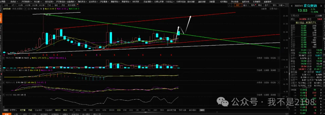 再来看看MKAD的季线图吧,今天虽然也是大幅调整,但是从季线图可以看出,股价在本季度已经突破了下压线,而且季线的指标均线都是走好的,这样的大格局下,日线的调整又算得了什么呢?而且,就算本季度收阴线都不用害怕,只要不跌破5季线,下个季度都是大概率要向上去攻击M2的上轨压力位了。