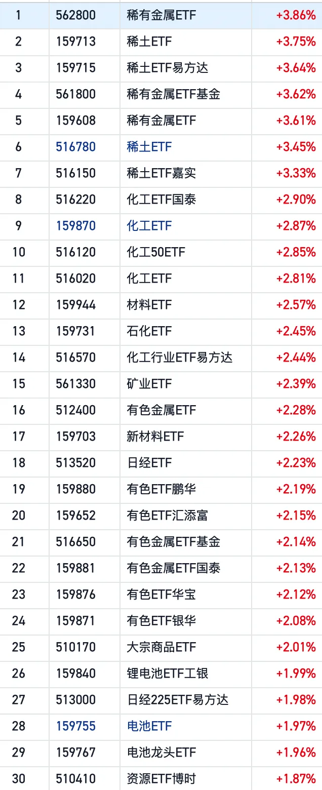 化工、有色第二,剩下日经、电池也还在榜上。化工真是一直没有合适的上车机会。电池前两天我们买了,继续持有。