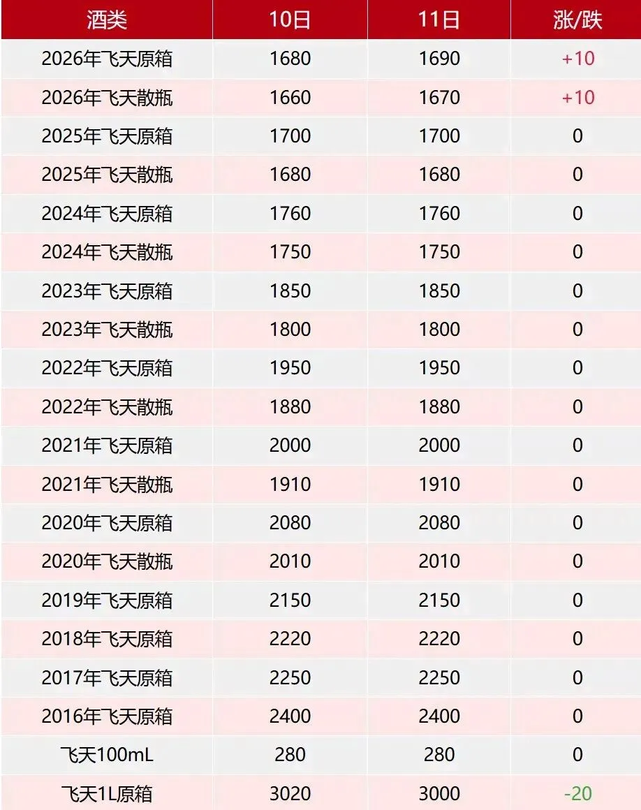 >飞天上涨.2月11日茅台行情价.