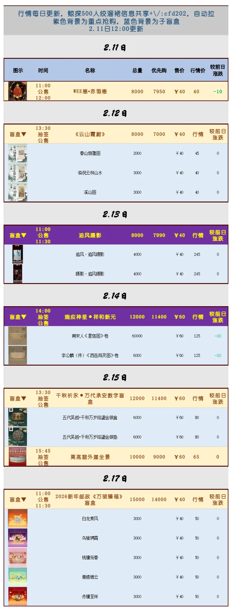 >鲸探2.11-2.17日行情价&发售日历
