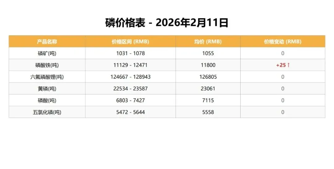今日铁矿石价格整体稳定,各地区各品位价格均未发生变动。磷产品市场同样平稳,仅磷酸铁价格继续小幅上涨,其他品类价格均维持不变。