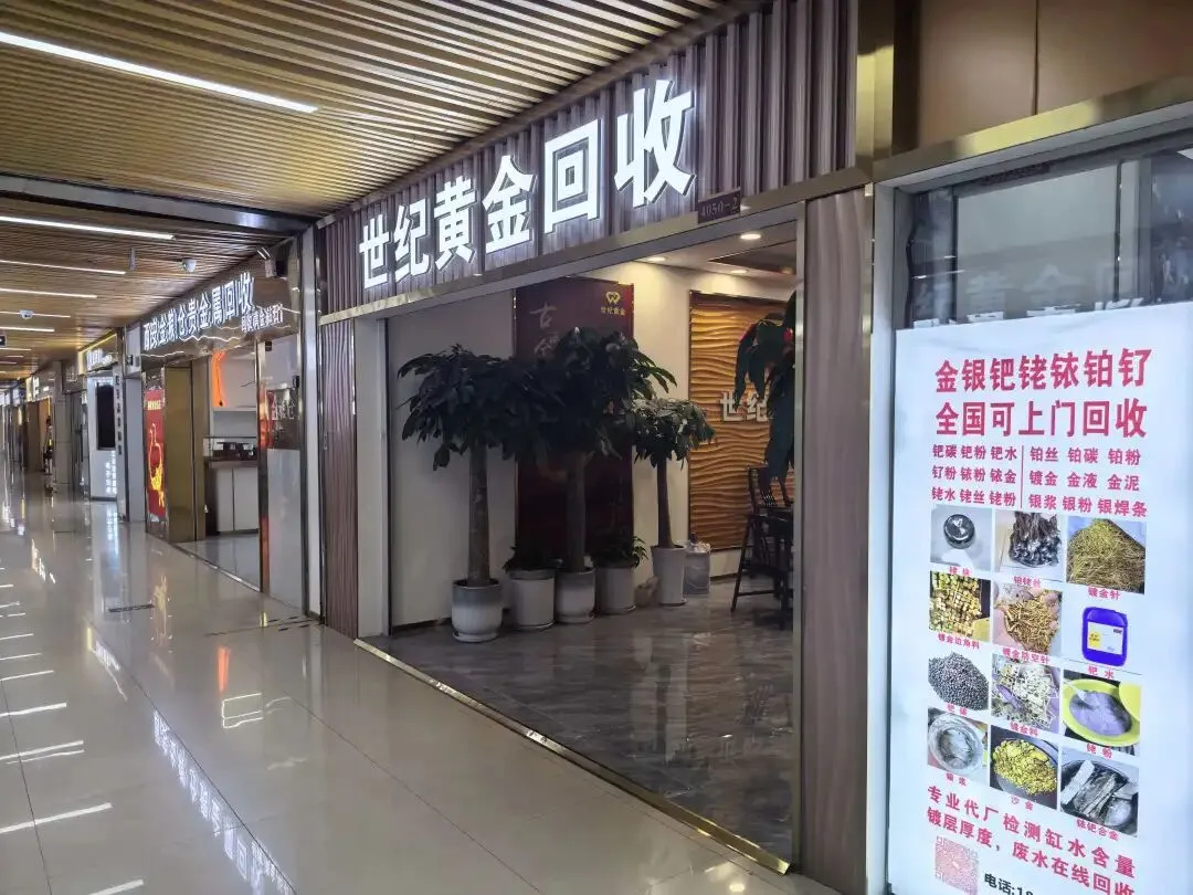 四楼不仅是多家珠宝公司的办公住址,还云集着珠宝镶嵌、水晶玉器批发、贵金属加工、包材辅料等诸多上下游商家,在当下的市场环境中,店铺数量最多的是贵金属回收商。