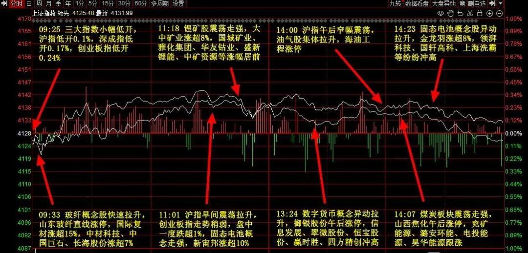 大盘指数还在红盘,但成交额比昨天又缩量了千亿,缩量涨大盘,这是每次节前护盘维稳的常规状态。回顾这几天的大盘指数,今天继续红盘收涨,日线相当于已经七连阳的状态了,节前会不会持续连阳上涨?今天大盘缩量收出了红盘,说明市场抛压较轻,主力资金只要很少的资金就能拉动大盘,说明大部分资金都在锁仓持股过节。