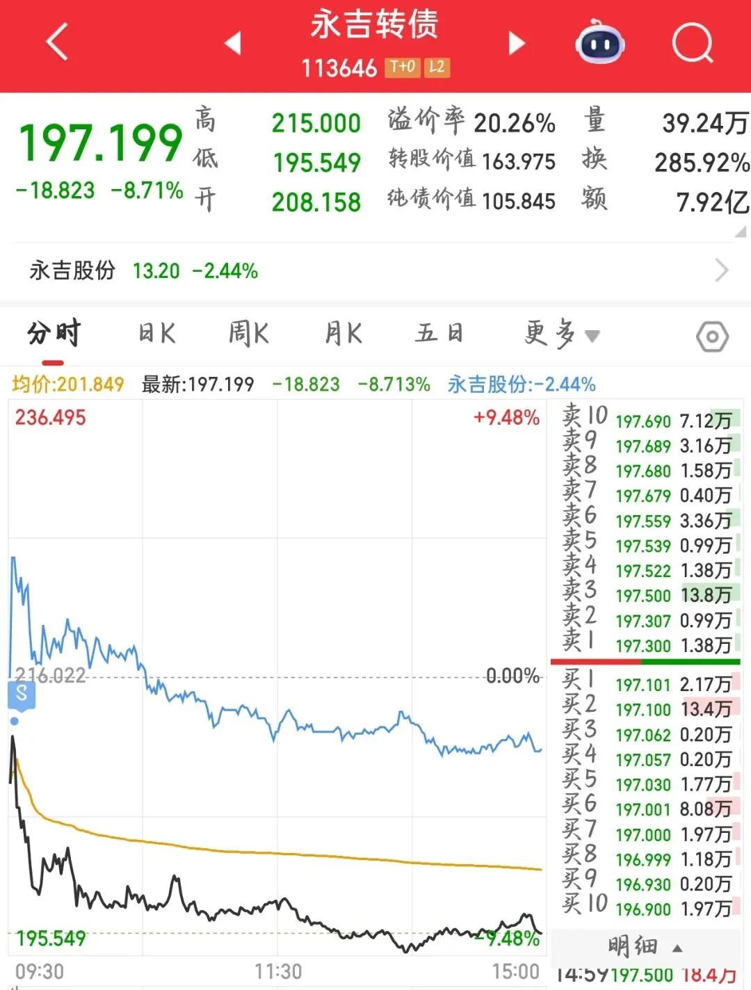 像永吉这种跟风,又不是纯正的热门主流概念,稍微遇到行情震荡缩量甚至回调的走势,就会出现情绪上的巨大分歧,可以说当天整体大盘还有板块上的赚钱效应的加持对永吉、百川这类涨停债后续走势的影响将会非常大。