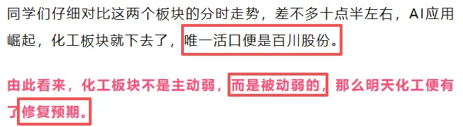 昨天宇神就提示化工板块是被动弱,今天修复预期,逻辑都给同学们讲得明明白白。