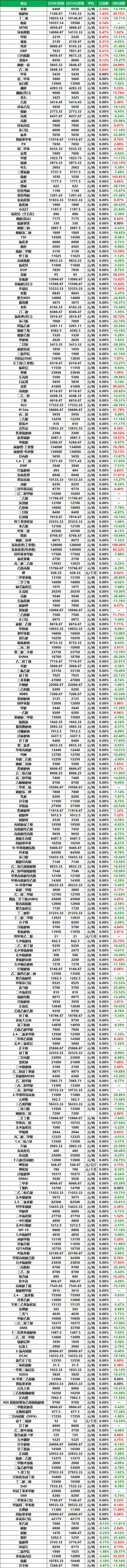 >2月10日化工产品行情一览