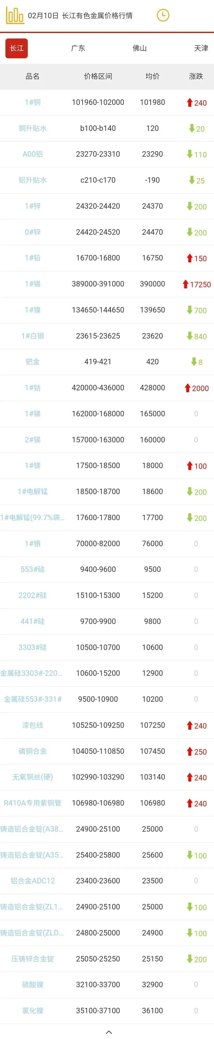 天津有色金属价格行情