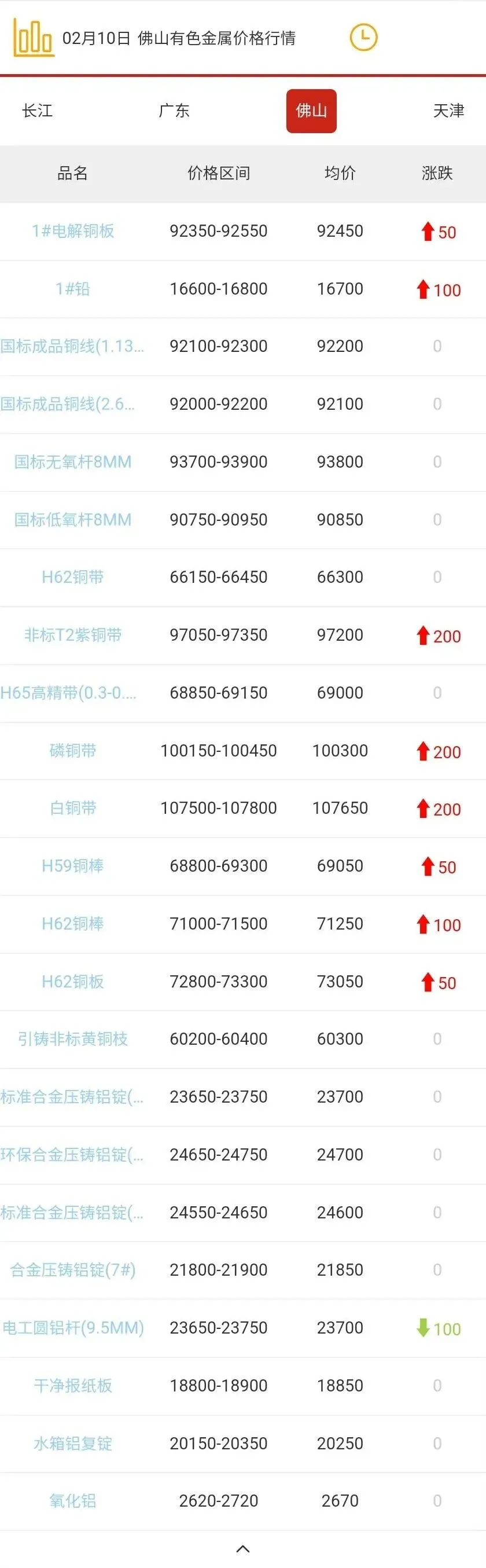 佛山有色金属价格行情