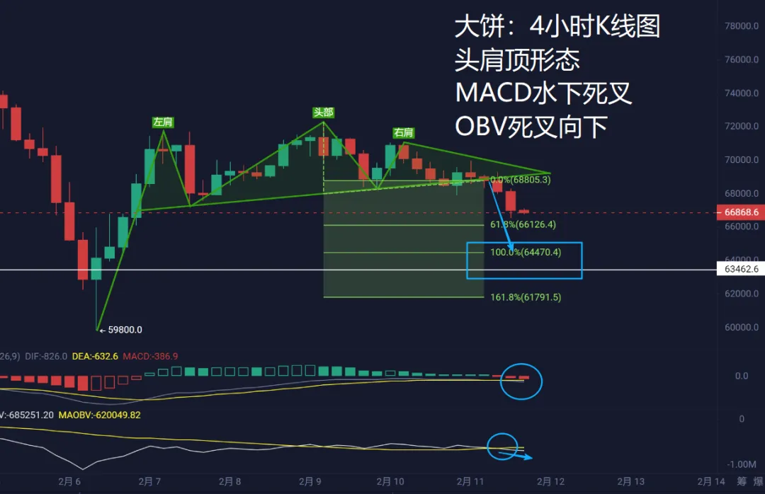(3)大饼巨鲸在6日创60K新低后,在最近一周累计增持了约 53000枚,打断了持续数月的减持,这是自11月以来最大规模的一轮买入,大饼可能进入中长期的磨低阶段。