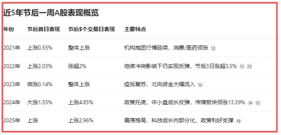 我的答案很明显,是要持股过节。因为,我统计了过去5年,春节后5个交易日的数据,我们能看出,节后首日上涨概率是100%,节后5个交易日上涨概率是80%。如此高的胜率,又有什么理由不搏一把。