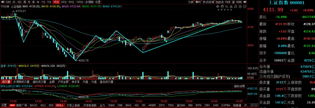 今日沪深两市成交1.98万亿,成交量较上一交易日缩量1213亿。两市实际上涨1977家,实际下跌3030家,实际涨停51家,实际跌停5家。主流资金今日净卖出528.08亿元,下图是今日资金进攻的板块路径今日市场继续呈现减量震荡行情,两市成交额从去年12月25日以来首次跌破2万亿,而涨停家数相比昨日继续小幅下降,资金继续缩圈抱团聚焦于涨价驱动主导的顺周期板块,与此同时算力硬件为首的成长方向和商业航天等题材炒作热度持续降温,沪指走出日线7连阳的同时,创业板指却全天低开低走失守多条中短期均线。虽然明日市场将迎来春节长假前最后出金日,或标志着短线资金兑现离场接近尾声,但沪指目前日线MACD仍未实现金叉向上,且日线布林轨道线持续收口面临方向选择之际,多空双方围绕5日均线和日线布林中轨线附近的争夺仍将延续。今日市场和昨日类似比较沉闷,盘中波幅很小,成交量持续萎缩,节前效应体现的很明显。倾向节前不太会有大的波动,维持昨日的判断走势在窄幅的区间里面震荡。不建议在节前放更多的资金,市场活跃度不够,持续性得不到保障。上证指数小阳线微涨0.09%,走势卡在小三买低点上方做窄幅震荡结构,整体趋势向上,结构是震荡套震荡。