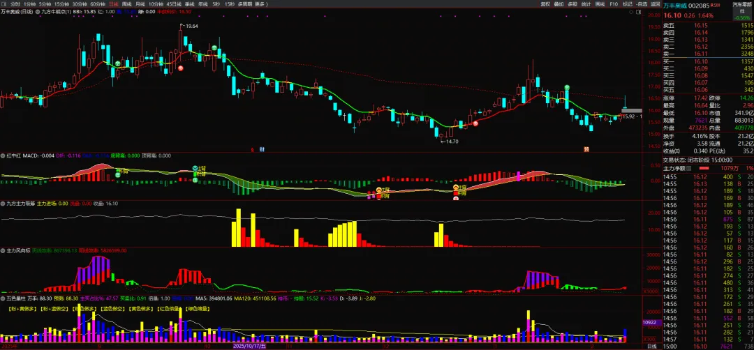 中线票:万丰奥威震荡,今天减仓了一部分,符合节前修复到16.5附近的预期,剩下的耐心持有。