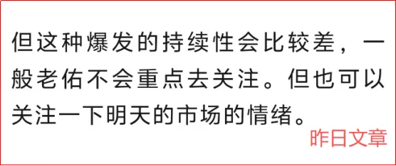 这种现象老佑已经提前和大家说过了,昨天的爆发持续性比较差,不用太过关注,
