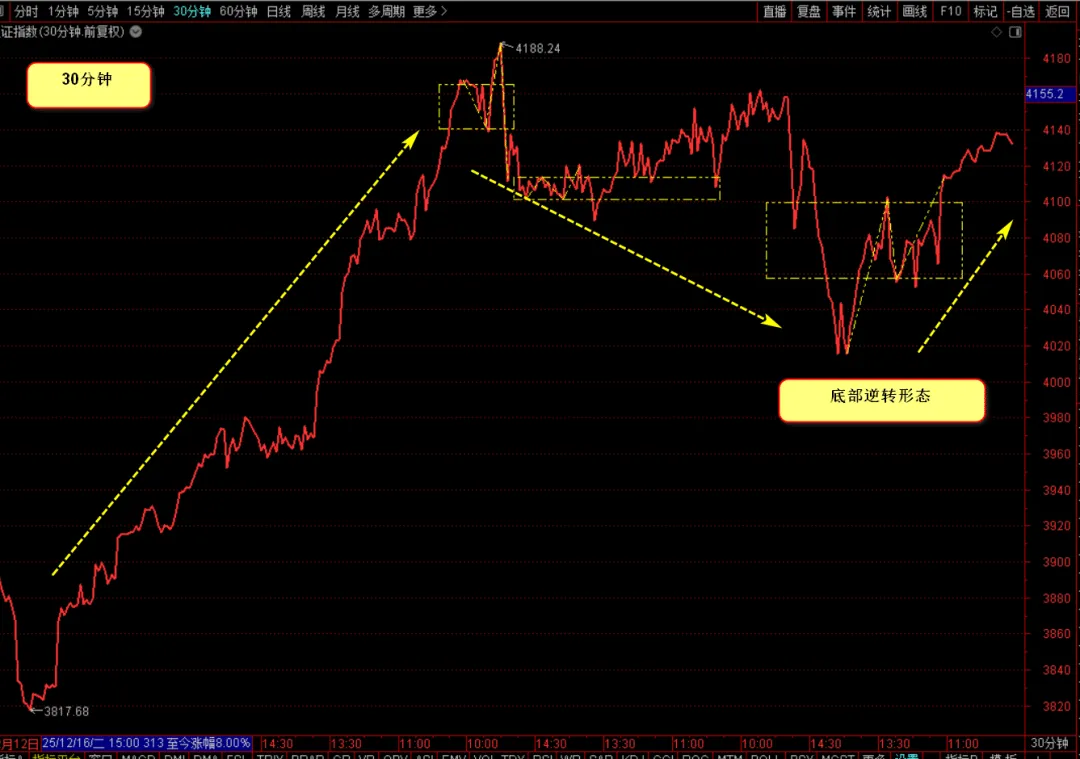 大盘30分钟看多,个股可按跟势交易的方法分析,30分钟底部逆转形态的,可介入。
